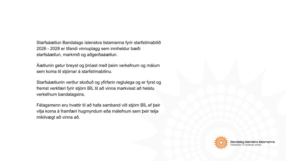 View Larger Image Starfsáætlun BÍL 2026 – 2028 vefstjóri BÍL2026-03-23T09:52:45+00:0023.03. 2026| FacebookTwitterEmail